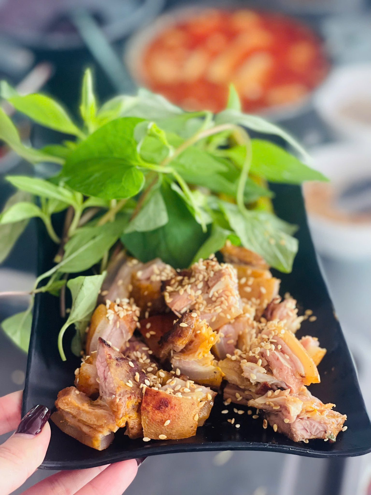 - Dê nướng tảng – mềm mọng, cháy cạnh, tỏa hương thơm lừng ngay khi vừa đặt lên bếp than.